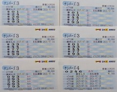 ![]() [「ナンバーズ3未出現データ、7/18まで」] 2025年7月23日 ![]() ミニストレート未出現狙いでした。 第6768回「588」をミニ当せん♪ 第6741回より出現なしのダブル狙いでした。 第6770回「693」をSS&ミニ当せん♪ 前回コラムのおすすめ数字でした。 第6772回「601」をミニ当せん♪ 第6772回N4「2460」をボックス当せん♪ 継続買いしてたおかげで、当たりました。 〜〜〜〜〜〜〜〜〜〜〜〜〜〜〜〜〜〜〜〜〜〜〜〜 7月10日の第6766回にGS狙いのミニ5口を当せんしてから、なんと3連続ミニ当せん、16日はN3「693」をSS&ミニ当せん、18日はミニとN4ボックス当せんと大当たり!情報メール会員様からも連日のうれしい当せん報告を頂き、ハッピーな週でした。そうそう大当たりは続かないと思うので、赤字が増えないよう、今週は少ない口数で様子見します。現在サマージャンボ宝くじが発売されています。夏の空のような大きな夢を見たいですね。宝くじ公式サイトでは、サイト限定で「ジャンボ&数字選択式宝くじ、よくばりセットキャンペーン」を8月11日までやっています。サマージャンボ3000円以上+数字選択式宝くじ1000円以上買われた方に、抽せんで1万名に宝くじポイント1万ポイントをプレゼント。波に乗り乗り絶好調な私も、4000ポイントを使って0円でチャレンジしてみました。なんだかまた当たりそうだな!? では、本題のデータに移ります。 ■ミニボックス数字未出現 (右横から最終出現回号、当せん数字。データは、7/18の第6772回[601]まで) ★マークは、私的見解と確率から見た出現期待度。最高は★5つが(MAX)です。 前回お知らせしたデータ(バックナンバー「ナンバーズ3未出現データ、5/9まで」を参照)から、H 26 I 56 以外すべて出ました。 今回更新分 @ 26(6635回) 462 ★★★★★ A 56(6638回) 265 ★★★★★ B 16(6640回) 216 ★★★★ C 44(6642回) 944 ★★★ D 77(6651回) 577 ★★★ E 68(6659回) 086 ★★ F 45(6661回) 354 ★★ G 05(6684回) 150 ★ H 99(6685回) 099 ★ I 03(6692回) 730 ★より出現なし。 ■N3ボックスペア数字未出現 前回お知らせしたデータから、B 77 以外すべて出ました。 今回更新分 @ 77(6666回) 770 ★★★★★ A 67(6708回) 637 ★★★★★ B 33(6718回) 133 ★★★★ C 99(6721回) 990 ★★★ D 05(6723回) 502 ★★★★ E 15(6724回) 422 ★★★ F 13(6726回) 638 ★★ F 17(6726回) 638 ★★ H 11(6727回) 611 ★ I 68(6731回) 680 ★より出現なし。 ■N3最近未出現ペア数字 最近未出現ペア数字 「百十※」「百※一」「※十一」をワースト10位までお知らせします。(右横から最終出現回号、当せん数字、10位までのトータルワースト順位。データは、7/18の第6772回まで) 「百十※」 前回お知らせしたデータから、E [91※] F [36※] G [22※] が出ました。 今回更新分 @ [74※] 6277回 748 1位 ★★★★★ A [07※] 6285回 075 3位 ★★★★ B [00※] 6334回 006 4位 ★★★★ C [59※] 6336回 595 5位 ★★★ D [92※] 6407回 920 8位 ★★ E [88※] 6513回 884 F [64※] 6519回 643 G [85※] 6522回 853 H [27※] 6531回 270 I [70※] 6533回 701 「百※一」 前回お知らせしたデータから、@ [8※9] A [1※2] D [3※1] E [9※2] H [6※5] が出ました。 今回更新分 @ [7※7] 6276回 747 2位 ★★★★★ A [1※4] 6362回 104 6位 ★★★ B [9※5] 6454回 975 9位 ★ C [9※1] 6455回 981 10位 ★ D [7※4] 6502回 724 E [9※7] 6517回 937 F [0※8] 6525回 098 G [3※8] 6547回 398 H [8※5] 6564回 835 I [8※1] 6565回 841 「※十一」 前回お知らせしたデータから、A [※58] C [※93] D [※24] E [※80] G [※55] H [※98] I [※19] が出ました。 今回更新分 @ [※45] 6398回 945 7位 ★★ A [※26] 6499回 426 B [※76] 6561回 776 C [※51] 6576回 751 D [※34] 6582回 934 E [※83] 6586回 783 F [※61] 6588回 161 G [※60] 6589回 060 H [※41] 6591回 241 I [※91] 6601回 091 穴狙いの方は、ストレートで狙えるペア数字です。ノートにでも書き写して参考にして下さい。出現したら消していきましょう。 ■出ていないストレート並びは [小大大]が第6756回より出現なし。★ [小小大]が第6762回より出現なし。 [奇奇奇]が第6746回より出現なし。★★★ [奇偶奇]が第6759回より出現なし。★★ ――つづく。 〜〜〜〜〜〜〜〜〜〜〜〜〜〜〜〜〜〜〜〜〜〜〜〜 今回のおすすめN3は、第6772回終了現在、第6708回より64回出現なしの[67]ボックスペア狙いで 5点。 [176] [276] [576] [776] [876] 超速ロト・ナンバーズTOPへ(C)イマジカインフォス