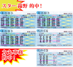 ![]() [僕と専務でナンバーズアベック当せん!] 2025年6月21日 ![]() 16日(月)、まずは専務がロト6で5等2口をQPで決めます! 続くナンバーズ4では当せん数字「6326」が出現! 専務のナンバーズ3の買い目は「362」で、こちらで買っておけばー! 思わず「アレッ?」と専務。 17日(火)は僕の出番! ミニロトで4等3口の大漁! 自力での大量、頑張りましたよー♪ ナンバーズ3では当せん数字「482」を専務が「148」グランドスラム狙い。外した風車盤の百の位「1」の隣は「2」‼ 18日(水)は、昨日の悔しさを専務が晴らします! ナンバーズ3で当せん数字「120」を「020」グランドスラム狙いでミニゲット! ミニが合っているだけに「くやしーいデスッ」と専務。続くナンバーズ4では当せん数字「7592」を僕は「7295」ボックス大当たり‼ 久々のナンバーズ4当せん、うれしいですねー♪ この日は、僕と専務でナンバーズアベック当せんを達成♪ 19日(木)は専務が魅せます! ナンバーズ4当せん数字「5354」を、本誌予想「5524」がひとつ違い、さらに本線「1553」がこちらも惜しいひとつ違いっ‼ なんだか当たりのにおいがプンプンしますねー☆ 迎えた20日(金)は、ナンバーズ3で当せん数字「536」を専務が「553」「053」グランドスラムで狙ってた! またまた惜しいひとつ違いーっ‼ これは来週リベンジですよー!! 今回の気になる数字 今回はここまでで2人合わせて、759週連続当せん。オススメ数字は、現在行われているゴルフの「全米オープン」。そのゴルフで正解長者番付が発表されました! なんと1位は「147」億円を手にしたスペインのジョン・ラーム選手! 我らが松山英樹選手も堂々の「9」位‼ いやー、夢がありますねー☆ 超速ロト・ナンバーズTOPへ(C)イマジカインフォス