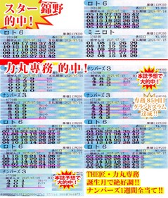 ![]() [キター‼ THE匠・力丸専務85回目N3GS‼] 2025年7月19日 ![]() 14日(月)、まずはロト6で僕が5等2口を自力でゲット! いま新しい予想にチャレンジしてるので、大きく当てたら、紹介しますね‼ 対する専務はナンバーズ3で当せん数字「588」をなんと「589」グランドスラム狙いで超惜しいひとつ違い! なにか大きな当たりが近づいているような気がしますよ! するとナンバーズ4で当せん数字「5295」を「5529」で買っていた専務! セットボックス大当たり‼ 月曜日から魅せてくれます! 15日(火)は、ミニロトで僕が4等1口を自力ゲット‼ まだまだです‼ 対する専務はナンバーズ3で当せん数字「548」を本誌予想「485」でボックス大的中‼ さすがですねー‼ さらに本線では「459」グランドスラム狙いで惜しいひとつ違い! 16日(水)は、またも専務! ナンバーズ3で当せん数字「693」を「369」グランドスラム狙いでボックス当せん‼ もう当たりが止まりませんねーっ‼ これで今週3連チャン‼ 17日(木)、今度はロト6で専務が魅せます。QPで5等4口の大漁っ‼ ノリノリです! すると、ここまでのいい流れは、この当たりのためと言わんばかりの大物が飛び出します! なんとナンバーズ3で当せん数字「442」をストレート、ボックス、ミニに当せん! 自身85回目のグランドスラムを達成した専務! 思わず「お待たせしました〜!」と喜びがあふれます‼ 誕生月パワーも相まって、今月はえらいペースで当たってますねー! 18日(金)は、専務が締めてくれましたー! なんと! なんと! ナンバーズ3で当せん数字「601」を本誌予想「401」でミニ大的中‼ これで1週間まるまるナンバーズ当せん! しかも本誌予想2発っ‼ 「当たるときは当たる‼」、出ました専務の名言‼ おっしゃるとおりです☆ 今回はここまでで2人合わせて、766週連続当せん。オススメ数字は、「2046」年にサッカーW杯を日本で開催するかもしれないというニュース。実現すれば、2002年の日韓大会以来「44」年ぶりに! 楽しみですねー! 超速ロト・ナンバーズTOPへ(C)イマジカインフォス