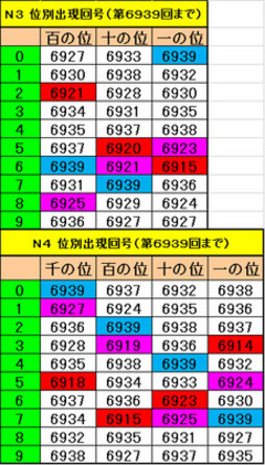 ![]() [「ナンバーズ3未出現データ、3/13まで」] 2026年3月17日 ![]() なかなか咲かない数字もあれば、突然満開になる数字もあるのが、ナンバーズの面白いところ。 「そろそろ出るかな?」と期待していた数字が沈黙を守り、「こんな数字が来るわけがない」と思っていた数字が元気よく顔を出す。 まるで春の天気のように気まぐれですが、それもまたナンバーズの魅力です。 3月は年度の締めくくりの季節。 忙しい日々の中でも、ほんの少しだけ数字と向き合う時間を作って、次に出そうな数字を探してみてはいかがでしょうか。 では、本題のデータに移ります。 ■ミニボックス数字未出現 (右横から最終出現回号、当せん数字。データは、3/13の第6939回[670]まで) ★マークは、私的見解と確率から見た出現期待度。 最高は★5つが(MAX)です。 前回お知らせしたデータ(バックナンバー「ナンバーズ3未出現データ、1/9まで」を参照)から、 @ 15 A 33 E 00 F 66 以外すべて出ました。 今回更新分 @ 15(6694回) 515 ★★★★★(MAX) A 33(6718回) 133 ★★★★★ B 00(6785回) 300 ★★★★ C 66(6790回) 766 ★★★ D 77(6810回) 777 ★★★ E 11(6812回) 411 ★★ F 46(6818回) 064 ★★★ G 08(6832回) 708 ★★★ H 78(6833回) 278 ★★ I 57(6836回) 157 ★より出現なし。 ■N3ボックスペア数字未出現 前回お知らせしたデータから、@ 33 A 77 以外すべて出ました。 今回更新分 @ 33(6798回) 313 ★★★★★(MAX) A 77(6810回) 777 ★★★★★ B 56(6877回) 567 ★★★★★ C 00(6879回) 003 ★★★★ D 55(6881回) 558 ★★★ E 11(6884回) 112 ★★★ F 08(6888回) 089 ★★★ G 66(6891回) 696 ★★ H 02(6892回) 620 ★★ I 59(6900回) 590 ★より出現なし。 ■N3最近未出現ペア数字 最近未出現ペア数字 「百十※」「百※一」「※十一」をワースト10位までお知らせします。 (右横から最終出現回号、当せん数字、10位までのトータルワースト順位。データは、3/13の第6939回まで) 「百十※」 前回お知らせしたデータから、@ [59※] A [38※]E [94※] が出ました。 今回更新分 @ [17※] 6614回 179 7位 ★★ A [42※] 6673回 422 B [95※] 6678回 959 C [33※] 6693回 337 D [96※] 6695回 964 E [02※] 6709回 020 F [71※] 6713回 718 G [99※] 6721回 990 H [50※] 6723回 502 I [23※] 6734回 238 「百※一」 前回お知らせしたデータから、A [7※4] B [9※7]C [0※7] E [5※0] が出ました。 今回更新分 @ [9※5] 6454回 975 1位 ★★★★★ A [2※2] 6577回 202 4位 ★★★★ B [0※1] 6601回 091 6位 ★★★ C [2※1] 6616回 281 8位 ★★ D [4※5] 6627回 495 E [7※3] 6649回 763 F [8※4] 6664回 804 G [5※1] 6667回 531 H [3※2] 6680回 312 I [9※4] 6695回 964 「※十一」 前回お知らせしたデータから、@ [※45] D [※60]E [※47] H [※32] が出ました。 今回更新分 @ [※26] 6499回 426 2位 ★★★★★ A [※51] 6576回 751 3位 ★★★★ B [※34] 6582回 934 5位 ★★★ C [※81] 6616回 281 8位 ★★ D [※92] 6617回 692 10位 ★ E [※65] 6638回 265 F [※85] 6669回 185 G [※28] 6677回 128 H [※59] 6678回 959 I [※87] 6683回 187 穴狙いの方は、ストレートで狙えるペア数字です。 ノートにでも書き写して参考にして下さい。出現したら消していきましょう。 ■出ていないストレート並びは [大大大]が第6922回より出現なし。★★★ [小小大]が第6223回より出現なし。★★ [偶偶奇]が第6925回より出現なし。★ [偶偶偶]が第6929回より出現なし。 ――つづく。 〜〜〜〜〜〜〜〜〜〜〜〜〜〜〜〜〜〜〜〜〜〜〜〜 今回のおすすめN3は、第6939回終了現在、第6916回より 23回出現なしの3けたプラス[14]狙いで 10点。 [077] [176] [365] [392] [626] [734] [833] [851] [905] [941] 超速ロト・ナンバーズTOPへ(C)イマジカインフォス