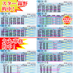 ![]() [跳ね馬のごとき当せんラッシュ‼] 2026年1月17日 ![]() 12日(祝月)、成人の日。新成人のみなさん、おめでとうございます! これを機にぜひロトナンバーズの世界へ足を踏み入れてくださいねー♪ まずはロト6で僕が5等2口を自力でゲット! 対する専務は5等2口をQPでゲット! 週明けからいい引きしてます! この引きのよさが、ナンバーズ3にも伝染! なんと当せん数字「982」を「892」グランドスラム狙いでボックスゲット! 今年始まって6分の5でナンバーズ3当ててるんですよ、専務! すごすぎっ! 13日(火)は、昨日に続き専務が魅せます! ナンバーズ3当せん数字「784」を「647」グランドスラム狙いで惜しくもひとつ違い! 続くナンバーズ4では当せん数字「2699」を「6229」で買ってた専務! 数字は合ってるんですよーっ! しかも風車盤中の位「2」の隣は「9」‼ 思わず絶叫の専務! 14日(水)は、またも専務が魅せます! ナンバーズ3当せん数字「325」を「226」グランドスラム狙い。一見、十の位しか合っていないような気がしますが、百の位「2」の隣が「3」、一の位「6」の隣が「5」なんですーっ! 15日(木)、まずはロト6で僕が5等3口! うち1口は僕の本誌予想が大的中! やったね☆ さらにほか2口はQPで引きました! たまにはQPもいいですね♪ 対する専務はナンバーズ3でやってくれました! 当せん数字「345」を「534」グランドスラム狙いでボックスゲット! さらにナンバーズ4でも当せん数字「8060」を「6080」ボックス、セットボックスに大当たり! まさに年明けから跳ねてますねー! 迎えた16日(金)は、専務が魅せます! ナンバーズ3当せん数字「597」を本誌予想「590」がストレートひとつ違い! これはしびれますっ‼ ちなみに本線も「479」でこちらも惜しかったーっ‼ 今回はここまでで2人合わせて、796週連続当せん。オススメ数字は、2月3日から全国一斉に発売される「バレンタインジャンボ宝くじ」から。1等「2」億円、2等も「1」億円と豪華賞金が目玉。合わせて回号の「1092」回も注意しておきたいところです! 超速ロト・ナンバーズTOPへ(C)イマジカインフォス