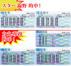 ![]() [軸が2数字合っても当せんなし!?] 2026年2月7日 ![]() 2日(月)、まずはロト6で僕が自力で5等1口ゲット! ちょっとおもしろい買い方をしてみたのですが、3口目だけ自分で選んで、あとはQP。そしたら、自分で選んだところだけ当たった! なんだかおもしろいですね♪ 対する専務はQPで5等2口当せん! すると、これでいい流れを作った専務は、続くナンバーズ3で当せん数字「037」を「337」グランドスラム狙いでミニゲット‼ さすがです! 3日(火)は、ミニロトで当せん数字「04 14 21 24 31」が出現! そして僕の買い目は「04」「24」軸‼ 当たりもらった! と思ったら、4等が1口だけ…。これは凹みますねー。対する専務もナンバーズ3で当せん数字「105」を「401」グランドスラム狙いでひとつ違い。さらにナンバーズ4でも当せん数字「3727」を「2037」「7032」「2537」「7532」「7537」で狙ってた! こちらも、惜しいひとつ違いっ‼ 思わず「カーーッ‼」と専務。 4日(水)は、専務が魅せます‼ ナンバーズ3当せん数字「160」を「069」のグランドスラム×2口狙い! これ風車盤百の位「0」の隣が「1」、一の位「9」の隣が「0」なんです! 結果論ですが、風車に矢が刺さるコンマ差に泣く結果に‼ 5日(木)から仕事で僕と専務は大分へ。 6日(金)は、2人とも撃沈! たまにはこういう週末もありですね! 来週に期待です‼ 今回はここまでで2人合わせて、795週連続当せん。オススメ数字は、いよいよ始まったミラノ・コルティナ2026冬季オリンピック。日本人の活躍が期待されます! そこで開催期間の「2」月「6」日〜「22」日をオススメ数字に。併せて当地での冬季オリンピック開催「70」年ぶりにも注目! 超速ロト・ナンバーズTOPへ(C)イマジカインフォス