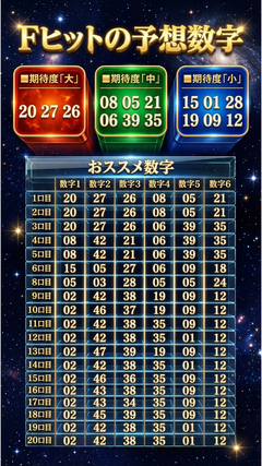 ![]() [第2067回ロト6予想] 2026年1月10日 ![]() 抽せんで使用された球はGセットが13回振りに使用された。やっと1番間隔があいている球が使われた。そうなると次回もこの流れで1番間隔があいている球を狙う。該当するのがFセット。現在10回あいている。このセットの期待度「大」の数字が「20 27 26」、期待度「中」の数字が「08 05 21 06 39 35」、期待度「小」の数字が「15 01 28 19 09 12」となる。この中から最善の6個の数字をピックアップしたので参考にしてほしい! 超速ロト・ナンバーズTOPへ