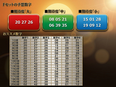 ![]() [第2068回ロト6予想] 2026年1月14日 ![]() 抽せんで使用された球はIセットが3回振りに使用された。こんなに短い周期でIセットが使われるとは・・・・。この球を予想するのは難しい。次回であるが間隔があいている球を狙いたい。私の見解はFセットだ!このセットの期待度「大」の数字が「20 27 26」、期待度「中」の数字が「08 05 21 06 39 35」、期待度「小」の数字が「15 01 28 19 09 12」となる。この中から最善の6個の数字をピックアップしたので参考にしてほしい! 超速ロト・ナンバーズTOPへ
