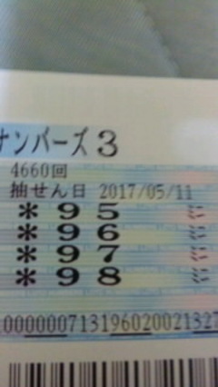 [4]かめ(20246294)/香川県/0歳/男性 なおさん ナン3ミニ当選おめでとうございます\(^o^)/ 今週も当たりちゃんよかったですね\(^o^)/ 来週も当たり舞い降りて来ますように\(^o^)/ 2017-05-13 17:02:09