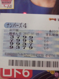 ◆今年初のナンバーズ当選 グレン(30001906)/福井県/34歳/男性 ![]() が当たりました。皆さんからのメッセージお待ちしてます。2017-07-05 20:08:38
