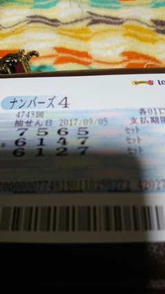 ◆久し振りの投稿♪ ぶよみ(20810061)/京都府/50歳/女性 ![]() ナンバーズ4が当たりました☆ 又当たる様に頑張ります(^-^) 明日は皆様が当たります様に♪ 2017-09-05 21:03:16