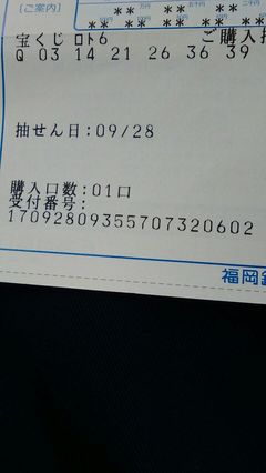 [3]ミニモニ。の友(30034282)/宮城県/46歳/男性 こうちゃんさん f]quickpickの一口ロト6購入して5等1000円当選おめでとうございます! 素晴らしいですね おめでとうございました!m(__)m!2017-10-02 11:30:00