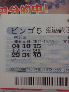 ◆ビンゴ5初当選 幸運の神(30001906)/福井県/35歳/男性 ![]() 2017-10-11 21:10:32