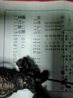 ◆近所のチャンスセンター閉店の為、今週も銀行ATMで ![]() ミスター・K(20321199)/福岡県/56歳/男性 ![]() ![]() 皆さん、ありがとうございます!! ちなみに、今回の紙押さえになってくれているのは、四天王のひとり・多聞天サンです(笑)!! ![]() 2017-11-13 20:41:03