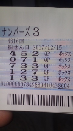 291451このボックス当たりで完全制覇達成しました291814ここで言う完全制覇とは、ナンバーズ3の全タイプを制覇したということで、ストレート、ボックス、セットストレート、セットボックス、ミニの5つのタイプ別に当たりが来たという事です291814そこのところよろしくお願いします291814