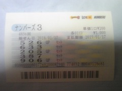 ◆1月17日水曜日はナンバーズ3の387番セットボックス6700円当選しましたf]81748