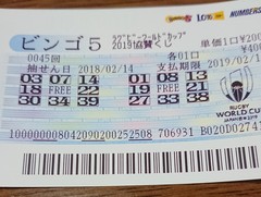 こんばんは、久しぶりの当選です。今回はビンゴ5で5ライン当たりでなかなかいい気分です。これからも1等当選目指したいと思います。