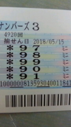 なお(20189771)/大阪府/63歳/女性 ![]() 約1週間ぶりに当たりました ![]() 嬉しいです ありがとうございます(^O^) 先週の金曜日 ☆0 昨日 0☆ 予想したのに買いきれず当たりを逃したので 今日は 97 98 99 90 91 と奮発しました 結果オーライでよかったです。 2018-05-15 21:08:16