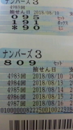 ◆N3セットボックス&ミニ当たりました ![]() なお(20189771)/大阪府/63歳/女性 ![]() 今日は結果を早くみました。 超速杯のポイントが昨日まで9ポイントだったのが 一気に 412ポイントになっていたから N3 890のボックスで登録していたから 昨日に引き続き当たったのでよかったです ![]() 配当金 安っ ![]() 2018-08-10 21:14:26