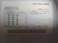 ◆8月10日金曜日初当たりナンバーズ3のミニ90番5400円当選しました。f] ![]() ![]() ![]() ミニモニ。の友(30034282)/宮城県/47歳/男性 ![]() こんばんは ミニモニ。の友です いつも応援ありがとうございます。 m(__)m!8月ミニ初当たり8月10日金曜日のナンバーズ3のミニ90番5400円当選しました。m(__)m!皆さんからミニ90番5400円当選のお祝いのコメントをお待ちしております よろしくお願いいたします!。皆さんありがとうございます。 ミニ当選配当金は安かったけど当たれば最高ですね 皆さんありがとうございます。![]() 2018-08-10 22:04:00