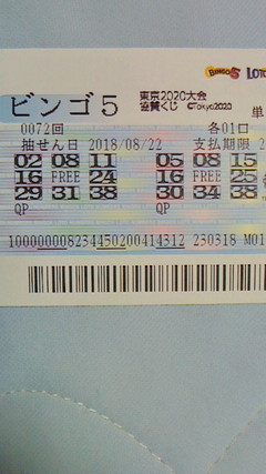 [5]T.T(20810677)/福岡県/41歳/男性 えむりんさん! ビンゴ5の当たりおめでとうございますー! 2018-08-23 18:51:56