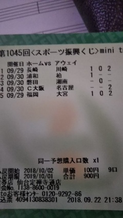 ミニトトB組で、373円ゲットしました〜🎵😁
