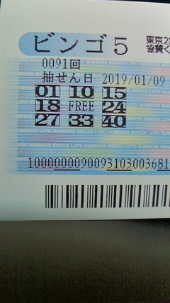 ◆今年初ビンゴ5来ました〜(^ー^) えむりん(20231548)/群馬県/44歳/女性 ![]() 2019-01-10 12:38:17