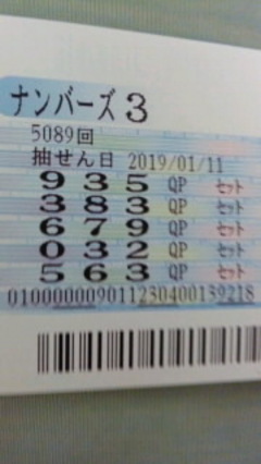 ◆N3SB当たりました ![]() なお(20189771)/大阪府/64歳/女性 ![]() 昨日は QPで5口セットで買ってみました 一口目の 935 当たっていました ![]() ラッキー ![]() 2019-01-12 08:08:16