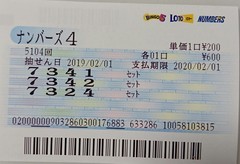 ◆久々ナンバーズ4🔔導き✌ 風雲児(20697331)/千葉県/32歳/男性 ![]() ナンバーズ4 SB×2口get❗ 我が🏠📝コメントして下さった皆様ありがとうございましたm(__)m 2019-02-01 21:10:54