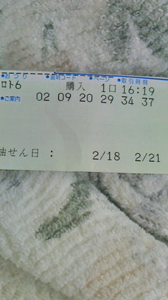 ロト6で5等来ました〜343どうやら私は月曜抽選のほうが相性がいいらしいです(笑)(^_^;)