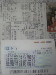 ◆ロト7 5等3口当選ヾ(^▽^)ノ ピーマルちゃん(20089741)/愛知県/40歳/男性 ![]() ナン4はまたまたニアピンヽ(´ー`)ノ ナン4当てたいなぁ(>_<) 2020-04-04 07:29:24