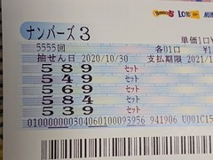 ◆皆様(*^^*)こんばんは〜♪ ひろぴん(20198933)/千葉県/50歳/男性 ![]() こんばんは(^○^) ロトナン10月ラスト〜♪ 当たりで締めくくれました \(^o^)/ 今日のナンバーズ! 第5555回だったので D軸で予想したら〜♪ ハマった(^o^)v Dはしばらく出現してなかったからハズレ覚悟で予想しましたf(^_^; 良かったです(^○^) 皆様〜♪ 今月もお疲れ様でした m(._.)m ロトナン11月も〜♪ 頑張りましょう\(^o^)/ ありがとうございましたm(._.)m 2020-10-30 20:20:02