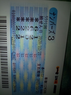 ◆ミニ当たりました😸 なお(20812797)/大阪府/0歳/女性 ![]() 昨日のミニ21当たりました😸 ネットでも一口買っていたので、合計2口当たりました😸 よかった❗ 2020-12-22 02:59:19