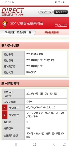 ◆チョイス一点でも当たるロト6⭐ ストライカー(20813224)/埼玉県/0歳/男性 ![]() 7が6ならもう一丁でしたが(笑) ありがとうございます。末等ですみませんが(^-^) 2021-03-15 19:32:45