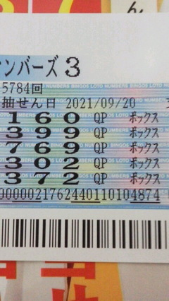 ◆ナンバーズ3 ボックス当選 幸運を招く戌神(30001906)/福井県/39歳/男性 ![]() 本日、月曜日のナンバーズ3でボックス当選しました。 写真のせます。 2021-09-20 21:33:58