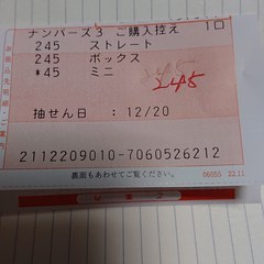 [2]たかはん(20215798)/富山県/38歳/女性 咲那さん♪ ぉ今晩は(^-^)/ はじめてお便りをします。 N3グランドスラム☆ミ おめでとうございますm(_ _)m 思い入れの有る数字なのでしょうか? 当選金はどの様に使われますか? ネット購入されているみたいなので、みずほ銀行様行きでは無いですね。 とても良い物を見せて頂き有り難うございますm(_ _)m 身近な数字の1ツで、敬愛してやまない女性のお誕生日数字のboxです。タイミングが悪くてまたまた取り逃がしてしまいました(TT) 2021-12-28 00:06:27