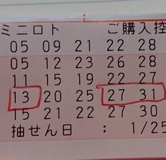 ◆ミニロト当選 咲耶(20343381)/北海道/0歳/女性 ![]() 2022-01-26 14:47:03