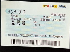 ◆ナン3ストレート当選☆ ゾロ(20045186)/兵庫県/50歳/男性 ![]() 昨日の、ナン3ストレートとミニに当選しました。 今迄はストレートでなくセットしか買っていませんでしたがストレートも買うようにしました。 当たって良かったです。 2022-07-20 13:48:55