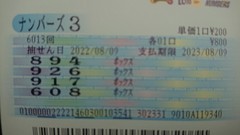 [5]#かめ(20246294)/香川県/0歳/男性 アタリッチさま ナンバーズ3ボックス当選におめでとうをありがとうございます\(^o^)/ 当たりちゃんの連鎖で今日も舞い降りて来ますように \(^o^)/ 2022-08-11 13:08:03