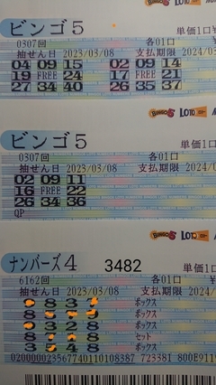 ◆水曜日ビンゴナンバーズ #かめ(20246294)/香川県/0歳/男性 ![]() 1ライン2つ 当たってました(^O^) ありがとうございます \(^o^)/ 2023-03-09 03:14:55